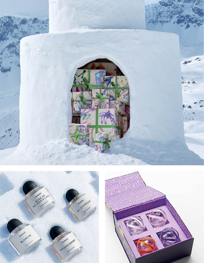 Byredo captures the Nordic winter atmosphere with its 2025 holiday collection. Set against sweeping mountain backdrops, the campaign imagines an otherworldly scene: sleighs gliding across crisp snow, delivering beautifully wrapped gifts to a perfume-bottle-shaped igloo, while families gather outside to sculpt snowmen and share laughter in the cold. It is a moment distilled to its essence — connection, generosity and the small rituals that make winter feel meaningful.