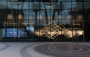 Dubai-based designer Rami Al Ali has partnered with architect Carmelo Zappulla for Expo 2020 Dubai’s Design and Crafts Programme MENASA, to share a joint story through an exclusive window display. Zappulla, founder and executive director of the award-winning international studio External Reference, specializes in urban design, architectural and interior design, and exhibition design. This project sees the architect creating a new installation in collaboration with the designer. Al Ali used his penchant towards craftsmanship to create intricate hand embroidery that covers the tips of Zappulla’s 3D Installation with the use of organic shapes. Al Ali’s work aims to create a visual journey that emphasizes the evolution of crafts in the region while modernising it to appeal to today’s generation.
