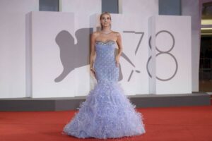 Leonie Hanne, wearing Rami Kadi, at the 78th edition of the Venice Film Festival