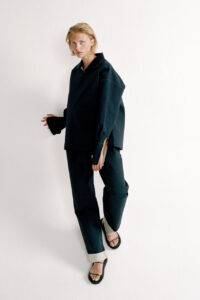 Utilitarian details and oversized shapes are infused with transparencies and elements of lightness and softness. Beautifully engineered sportswear-inspired shapes and sculptural layers sit alongside dresses and tops with dainty crisscross strap-tie open-back detailing. Subtle lingerie details are used throughout the collection.