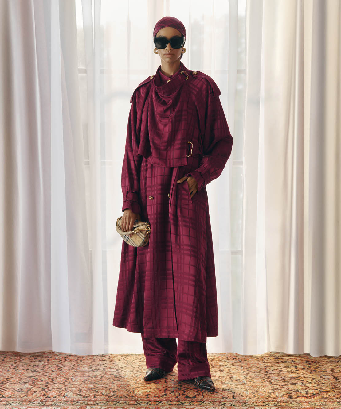 Burberry’s Ramadan 2026 capsule collection offers a refined celebration of the Holy month through fluid silhouettes, luminous textures, and subtle reinterpretations of the House’s most recognisable codes. Rooted in a seasonal palette of ripple red and santal beige, the pieces balance softness and structure, evoking both grace and modern ease. Trench coats, dresses, and silk pyjama sets are jacquard-woven with a tonal House Check, their lustre elevated by gold-plated hardware that adds a discreet shimmer.