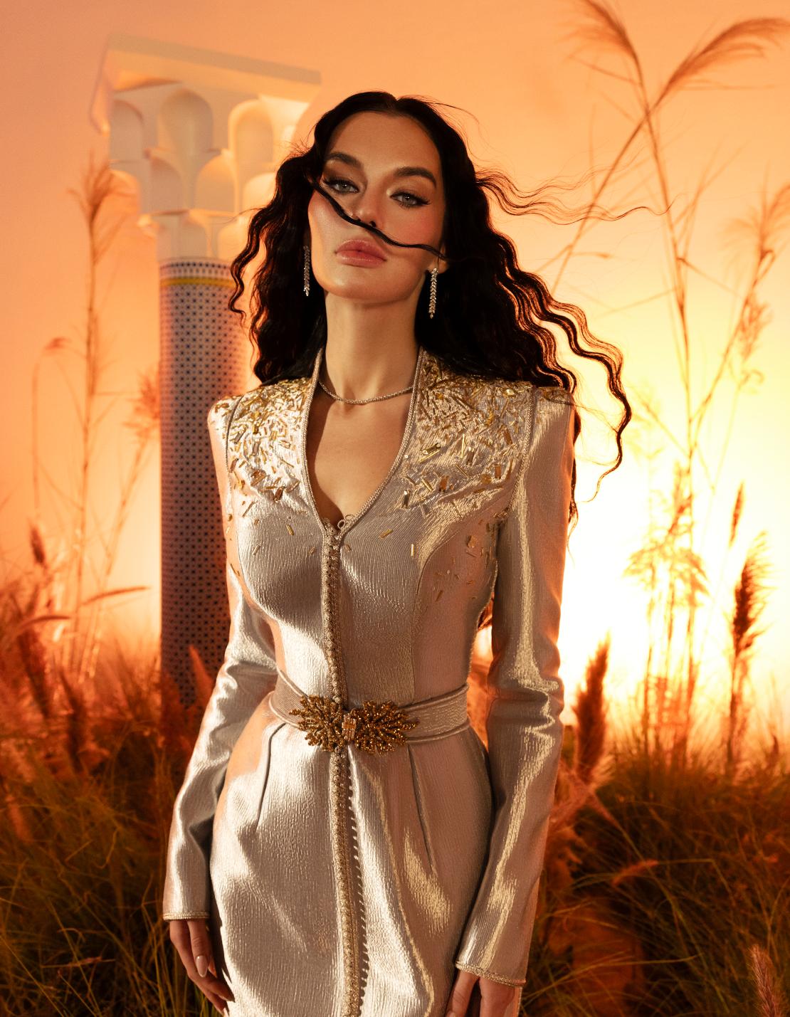 Each year, the month of Ramadan is a key moment for the brand, and this year is no different as Benomar prepares to launch the Marrakech Twilight collection for 2024. The collection is inspired by the Moroccan city of Marrakech and captures its vibrancy and majestic architecture. The collection features belted kaftans, two-piece suits and flowing evening dresses, decorated with embroideries and iridescent details. Here, we find out more about the collection and Benomar’s commitment to reinventing the traditional kaftan.