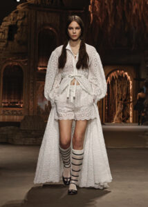 She also took inspiration from the Tuileries Gardens created according to Catherine de Medici’s wishes. Medici was an Italian noblewoman who arrived at the French court in 1533, she is an emblematic figure of the relationship between women and power, and Maria Grazia Chiuri is fascinated by her political intelligence and the innovations she pioneered.