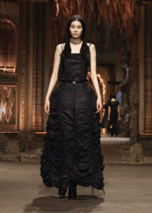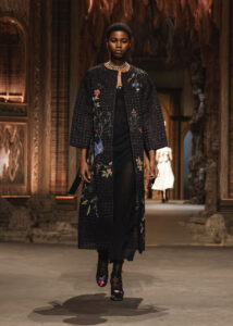 Contemporary craftsmanship also revisits an ancestral tradition: raffia coats adorned with floral and bird motifs are enhanced by a scenography designed by artist Eva Jospin that reinvents Baroque grottos.