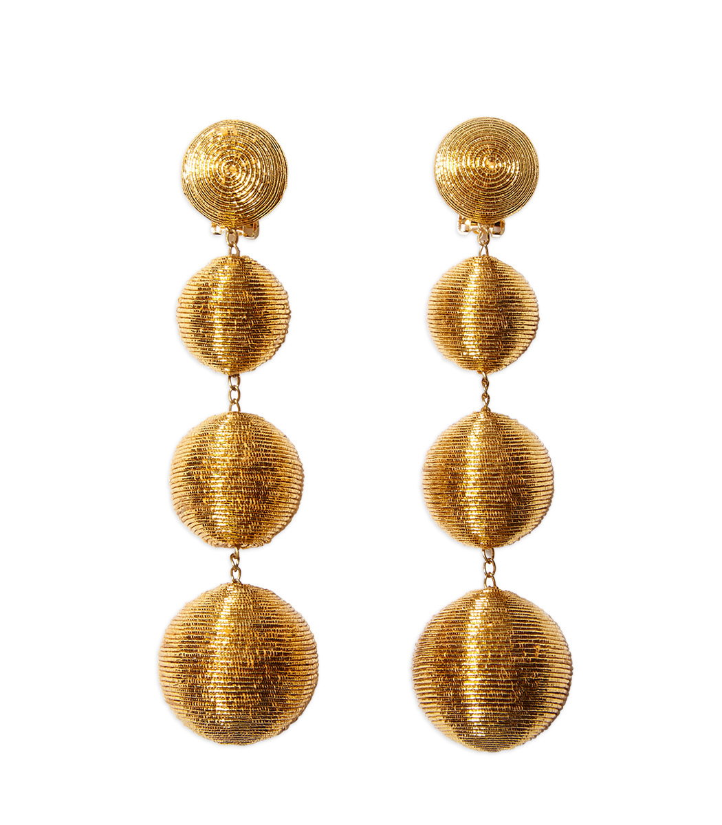 These featherweight earrings are individually hand embroidered in India. Known as ‘Les Bonbons’ earrings by Rebecca de Ravenel, they are a stylish choice for any summer outfits. Perfect to accessories stylish daywear and glamorous eveningwear.