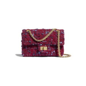 The 2.55 also comes in metallic leather with gradated hues, echoing certain silhouettes in the collection. At the Fall-Winter 2020/21 Ready-to-Wear show, the Artistic Director included the iconic Chanel bags in the same tweeds of the collection: a suit is thus accompanied with a 2.55 in raspberry tweed embroidered by Montex, while a coat, crop top and shorts ensemble is completed with an 11.12 bag in white tweed patchwork.
