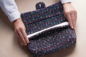 Once the skin is selected, production can begin. Each piece of the bag is cut using a template outlining the pattern. The cutter’s challenge is to find the ideal cutting points so that each piece can be perfectly placed and lined up together once assembled. The process can be particularly delicate for tweed (the patterns must be impeccably aligned). One by one, the pieces are then “pared down” or thinned out, to prevent any eventual roughness caused by the seams. Once prepared, the pieces are ready to be quilted using a needle and then assembled. Meanwhile, the double “C” will have been stitched onto the flap.
