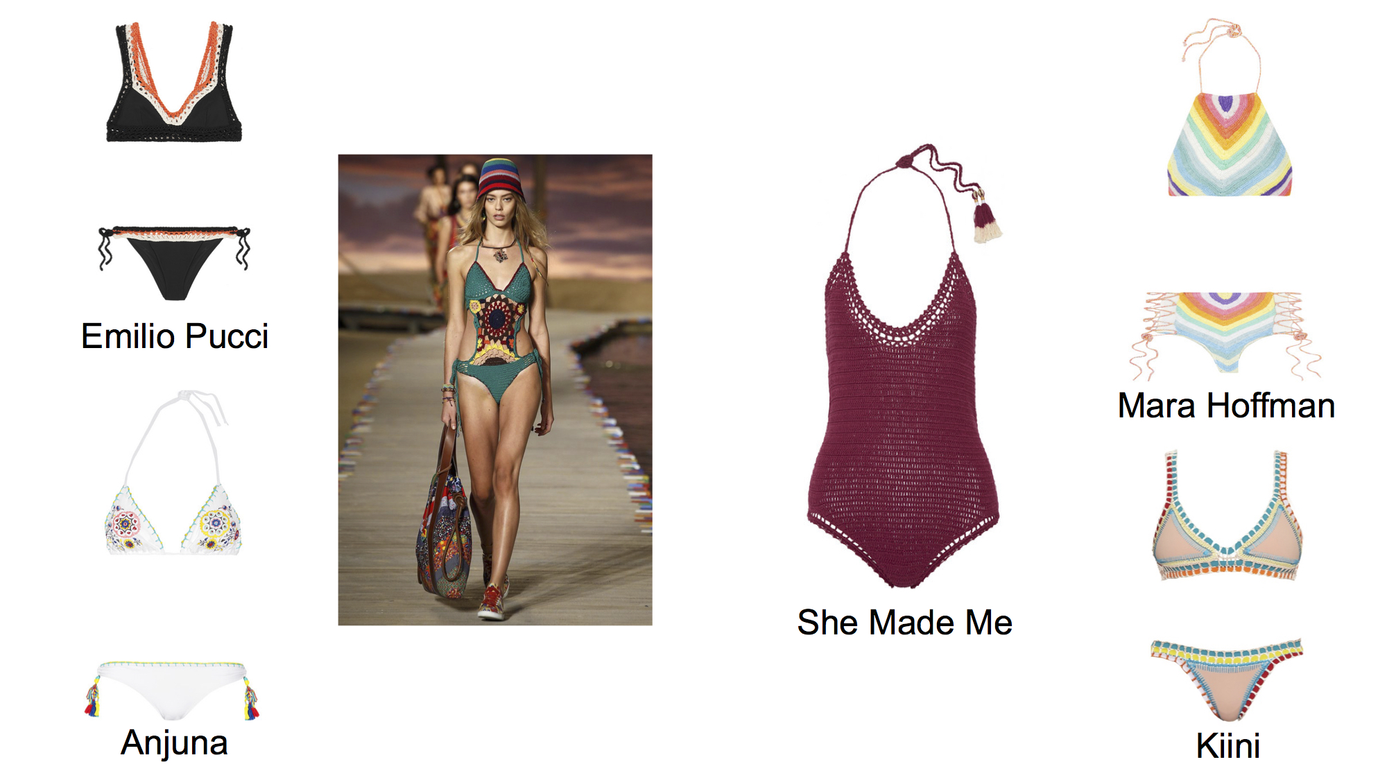Emilio Pucci – This chic. black bikini brings a pop of colour with an orange and cream crocheted trim that also flatters the figure.