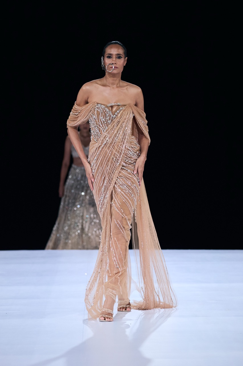 Gaurav Gupta, an alumnus of Central Saint Martins in London, has established himself over the past nineteen years as a leading figure in Indian couture. His work merges indigenous construction and embellishment methods with futuristic forms, resulting in designs that are rooted in Indian heritage yet expansive in global appeal. Gupta’s reinterpretation of the sari into modern gowns has become one of his signature contributions to contemporary couture.