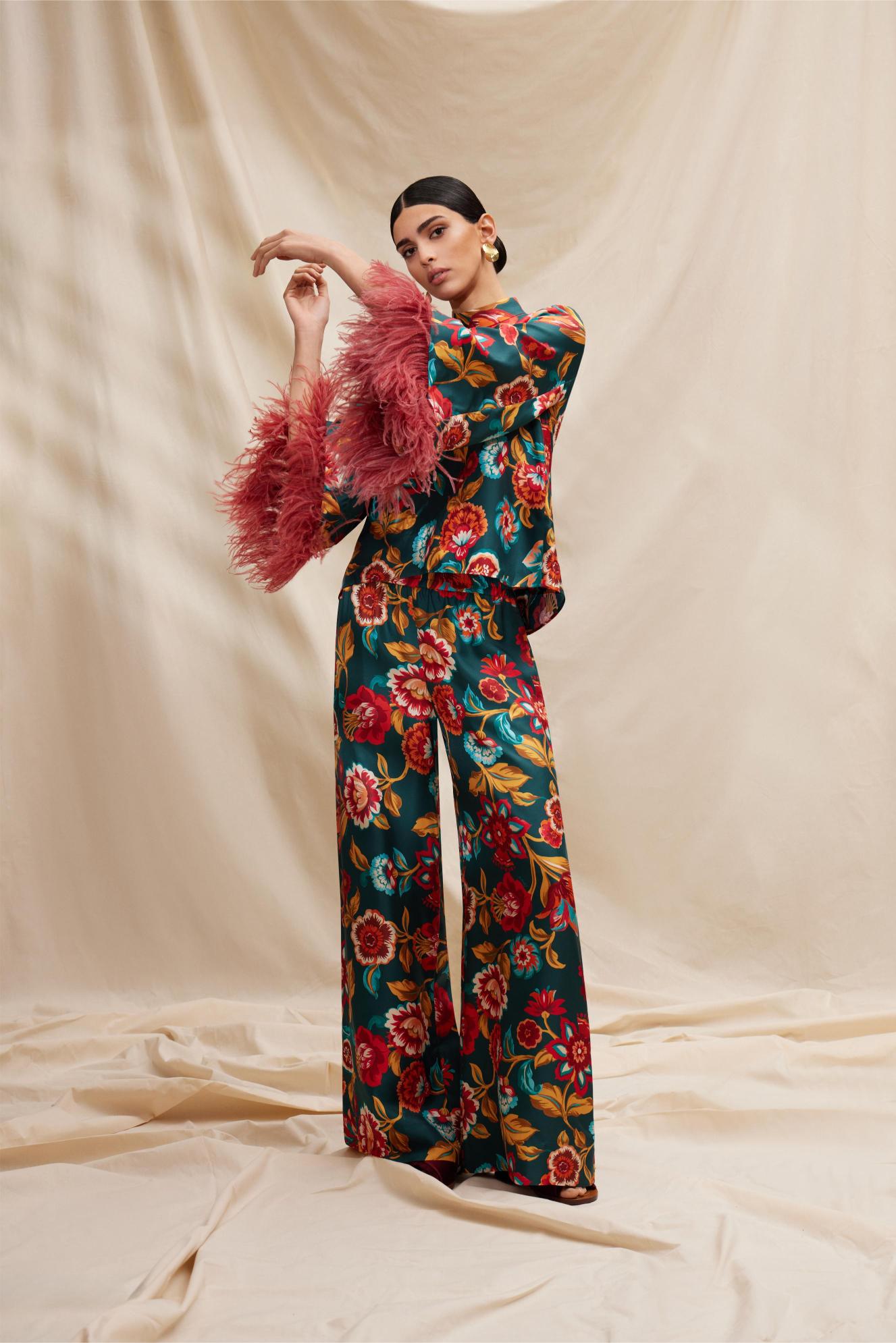 From beautiful separates to floor-sweeping dresses, all items arrive in the new Emerald print, a firework of florals across a deep green base, in honour of the auspicious changing of the seasons.