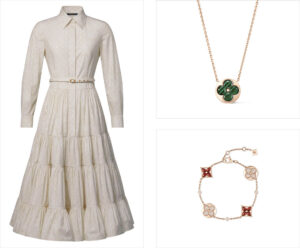 Fluidity defines the ready-to-wear offering, where versatility takes precedence. Pieces are designed to move seamlessly from day to evening, with soft, flowing silhouettes elevated by precious details such as gem buttons and delicate embroidery. The colour palette remains calm and considered, built around earthy browns, powdery pinks and warm neutrals that reflect a sense of understated chic.