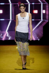 Before the presentation teasers showed flashbacks of some of the show’s models in 2005, consequently fast-forwarding to today. Prada wanted to offer a glimpse of tradition and how it passes between generations and creates a story of people’s lives. When it comes to clothing this story is reflected too, classic Prada pieces that have become a key part of the House’s DNA were given a new upgrade, not taking away from their tradition but elevating them for today.
