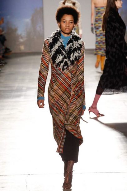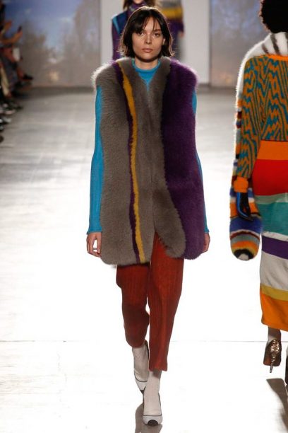 Layers were a key feature of the show; long jumper dresses were layered over knitted trousers, long v-neck jumpers were layered over turtlenecks. One white fur coat had a multi-coloured print that mimicked the layers of sedimentary rock; a reference maybe directly taken from the mountain itself.