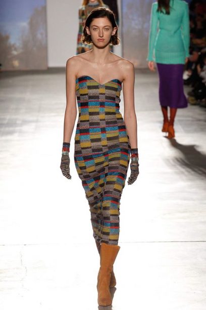 For the evening looks, there were lurex knitted dresses with flattering patterned panels, and a couple of beautiful strapless dresses that were knitted but also structured around the chest to give them support and great shape.