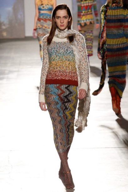 Before the AW17 show today in Milan, Missoni had posted teasers of the upcoming collection citing the Monte Rosa as the inspiration behind the season. The Monte Rosa is a beautiful mountain that makes up the view from Missoni headquarters; so this was to be a collection close to home and to Angela Missoni’s heart.