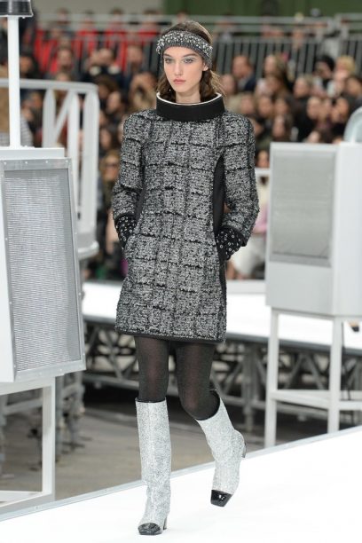 Anything is possible in Lagerfeld’s world, and his fall-winter 2017 collection offered nothing less. The “Chanel Ground Control” themed collection set a retro-futuristic tone with the ’60s influenced boxy mini dresses and ‘Go Go’ boots. There was an obvious astronaut style found in monochrome hues, outer space prints and mirrored goggles that added a modern twist.