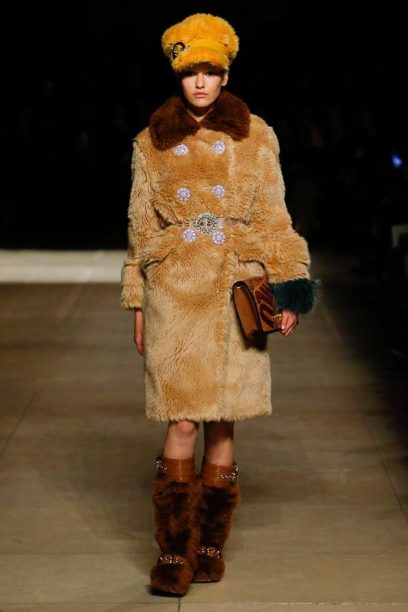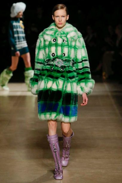 From the word ‘go’ the theme of the Miu Miu AW17 collection was clear; fur, fur and more fur. The invites were made from a fun and tactile purple faux fur, and on arrival guests were faced with a giant fur-lined purple staircase.