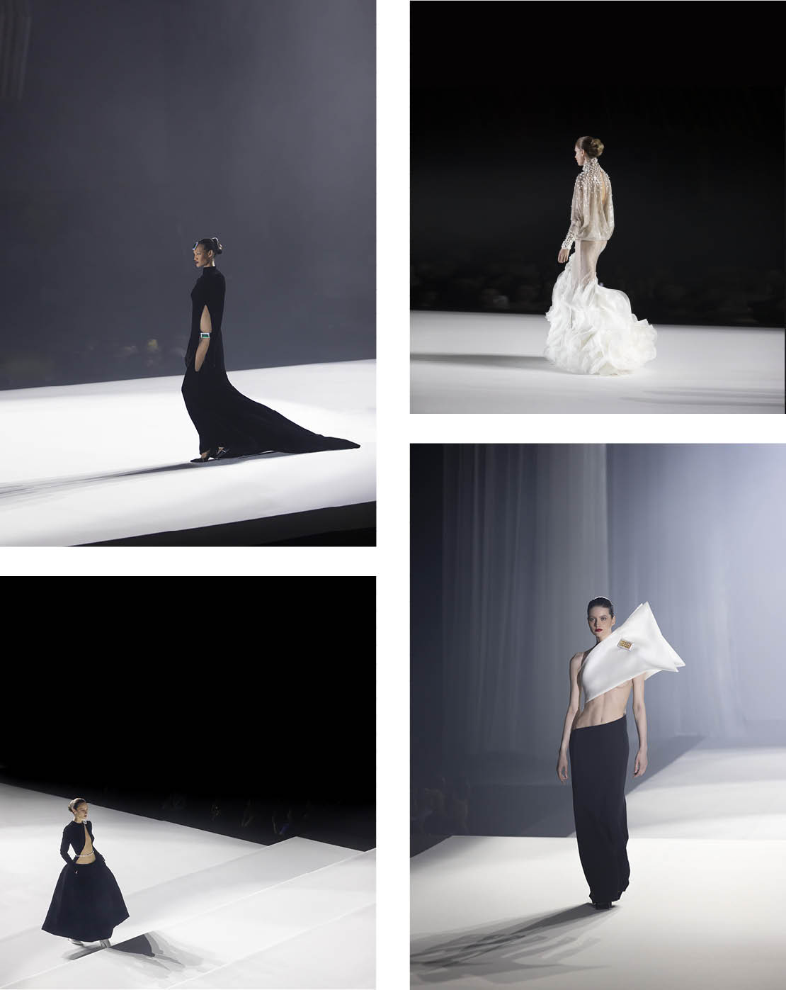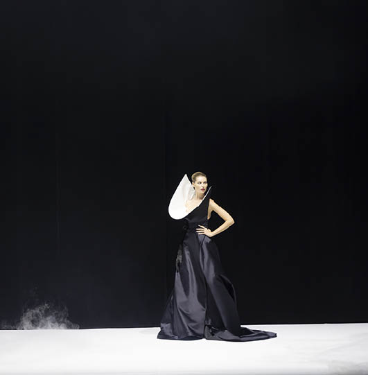 It’s very Parisian. Everything is black and white – I wanted to show who I am and my DNA – in the structure and graphic lines – so we are in Paris in the forties. The theme is one thing, but the mood of the show was very important. I used very old songs with the voices of great French artists in the soundtrack.