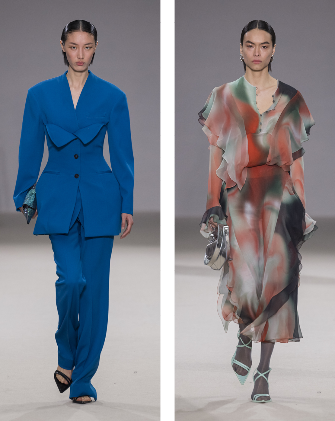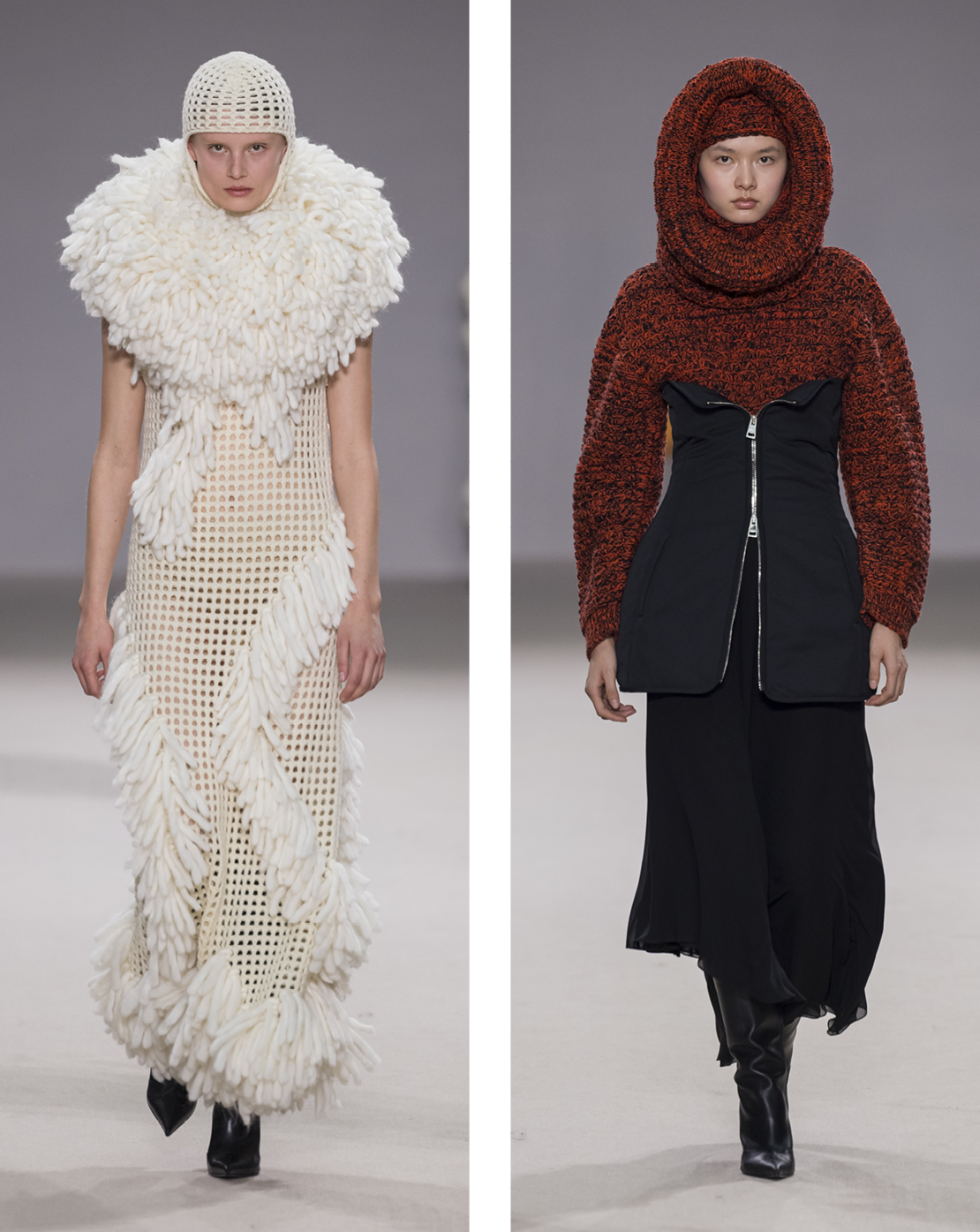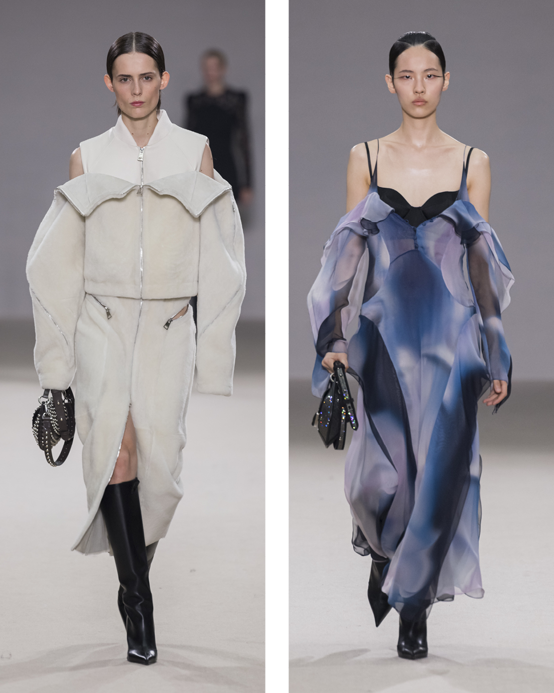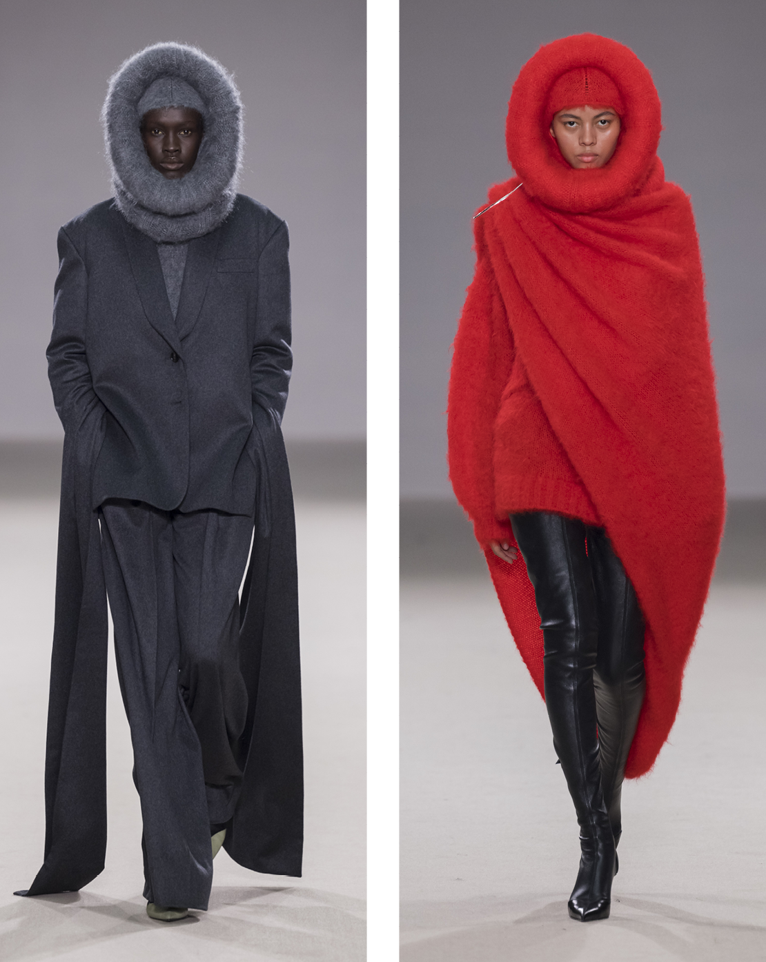 I like to take something that’s maybe a little more classic, like classic beautiful silk or cashmere, and then give it a bit of a twist. Mixing fabrics that are different, using fabrics in different ways, and controlling them in ways to create sculptural pieces. I think the challenge is to start with high-quality materials and manipulate them. For example, in the last show, there was cashmere, which we treated in a rough way so it looks a little more alive, almost like felt, and then you touch it and are surprised by the softness of the fabric – it’s unexpected.
