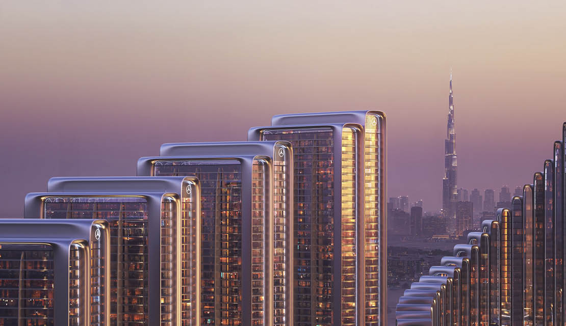 Grounding the project is Mercedes-Benz’s design philosophy of Sensual Purity, a concept that prioritises clarity, proportion, and emotional resonance. The development embodies the brand’s DNA through movement, fluidity, and technological precision. Horizontal podium lines echo the iconic grille, while sleek technical silver and chrome accents subtly reference the marque’s heritage. The towers appear to hover above their bases, creating a floating effect that reinforces a sense of lightness and elegance against Dubai’s dynamic skyline.