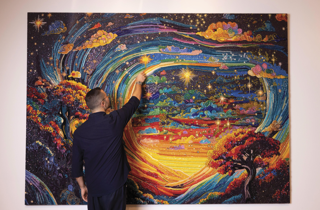 When asked to describe his work in just a few words, Kadi smiles and answers, “emotional, happy, eclectic, textured, and full of light.” Through Blooming Universe, Kadi explores the eternal cycle of bloom, metamorphosis, and renewal, themes that mirror both his personal evolution and his artistic rebirth. His seamless transition from fashion into art demonstrates his ability to translate emotion into form and vision into matter, reaffirming his place as a creator who moves fluidly between worlds.