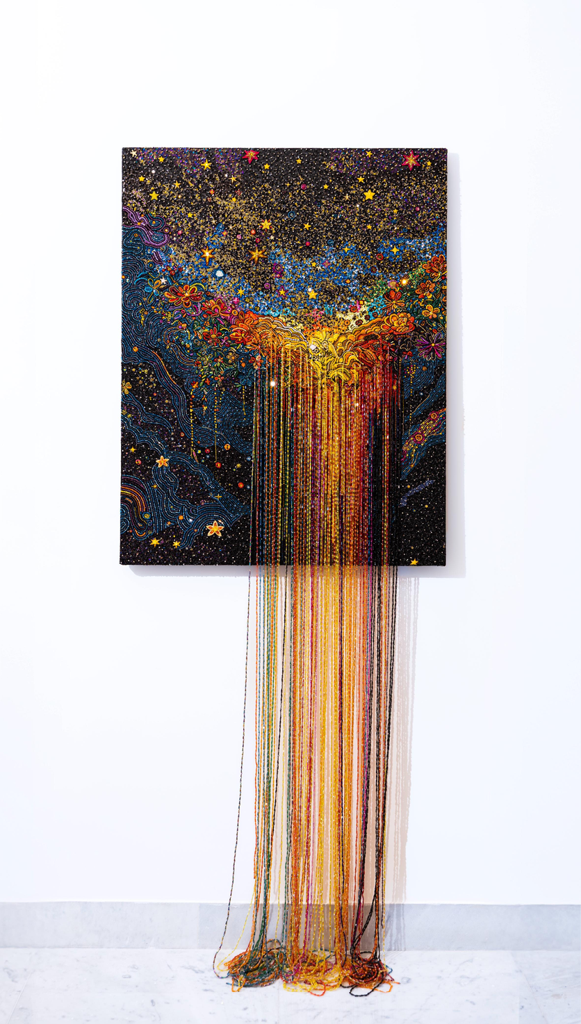 In Blooming Universe, Kadi invites viewers into a magical world, one where emotion, texture, and light converge to form three-dimensional poetic expressions of beauty and transformation. Each piece reflects his exceptional craftsmanship and in-depth knowledge of the materials he works with, whether thread, resin, or crystal. The precision of couture seamlessly transitions into the realm of contemporary art, resulting in works that are at once three-dimensional and ethereal.