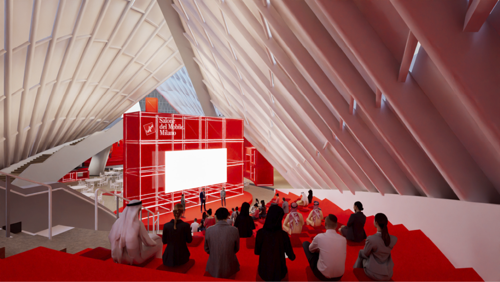 The event’s title, “Red in progress. Salone del Mobile.Milano meets Riyadh”, is intriguing. Can you tell us more about the concept and message behind this theme?