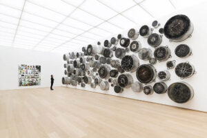 This engagement with memory and lived experience also emerges in the work of Maha Malluh, one of Saudi Arabia’s most influential contemporary artists. Working primarily with assemblage and found objects, Malluh transforms everyday materials, often linked to domestic life, ritual, and repetition, into meditative compositions. Her practice reflects a quiet spirituality rooted in accumulation and rhythm, echoing Islamic artistic principles while addressing cultural memory and social change within the Kingdom.