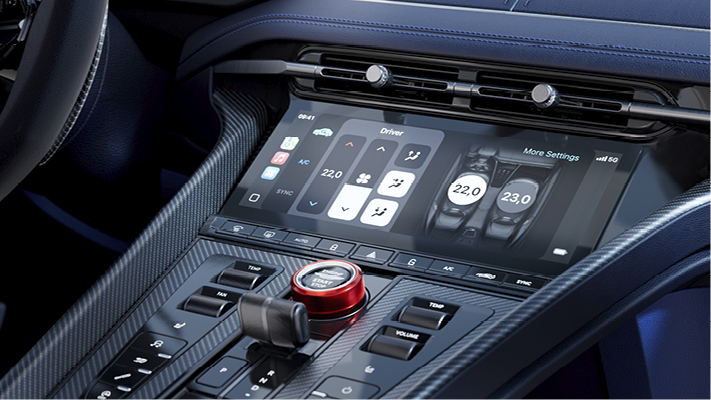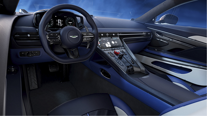 Inside, the DB12 S celebrates its halo status through meticulous attention to detail. The red-anodised drive-mode controller sets the tone for a cabin defined by craftsmanship and material richness. Buyers can choose between full semi-aniline leather or a combination of leather and Alcantara, with new quilting techniques and precision embossing adding sculptural depth. Sport Plus seats come standard, while a lightweight carbon-fibre performance seat is available for those seeking an even more dynamic edge.