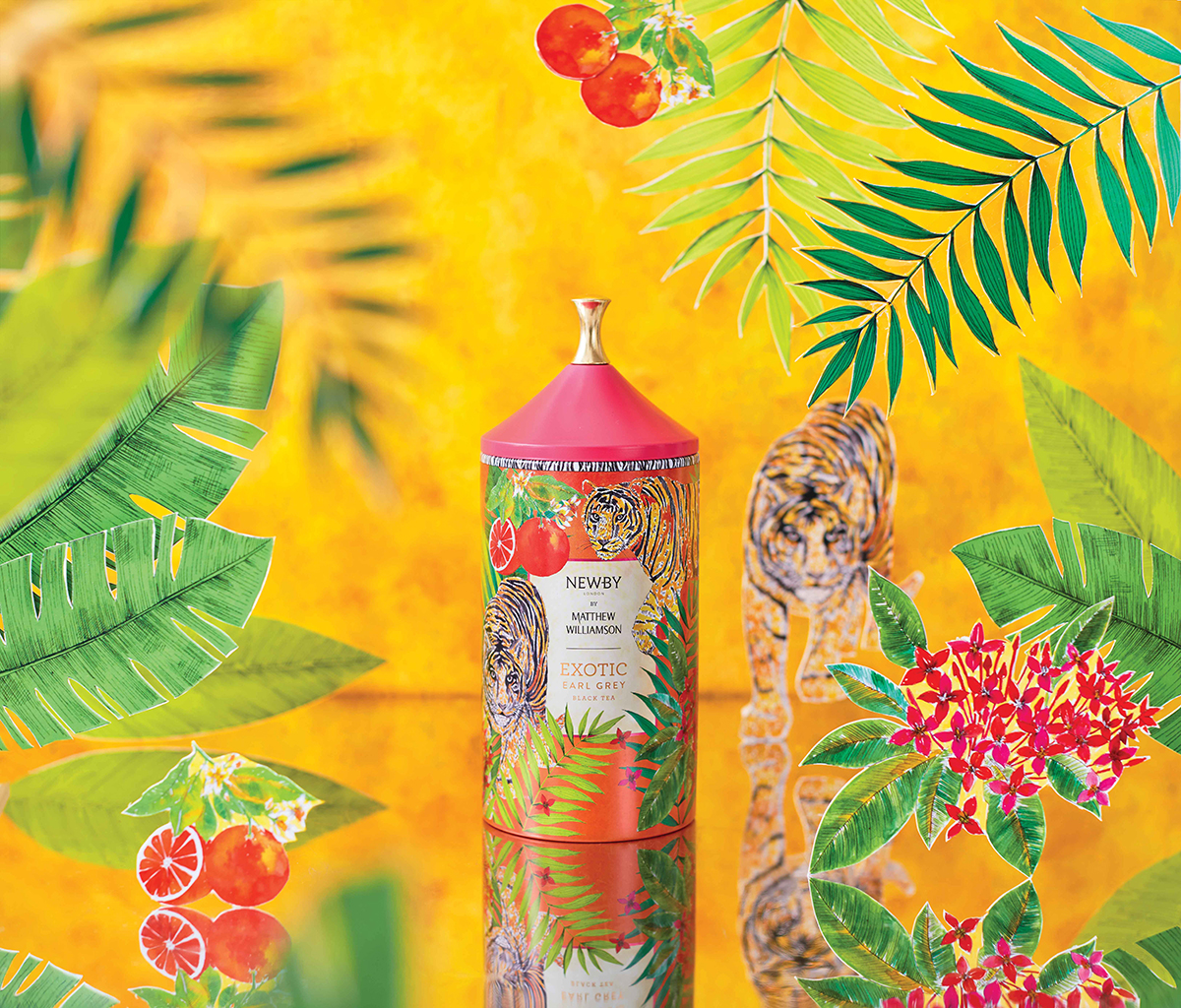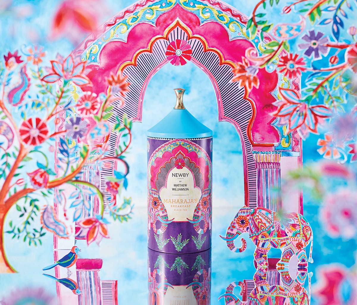 Well, these equally regal British ideals have come together as designer Matthew Williamson – one of the Duchess of Cambridge’s go-to designers who is known for his use of kaleidoscopic colour, intricate patterns and designs inspired by nature and travel – has teamed up with Newby Teas to create his own collection.