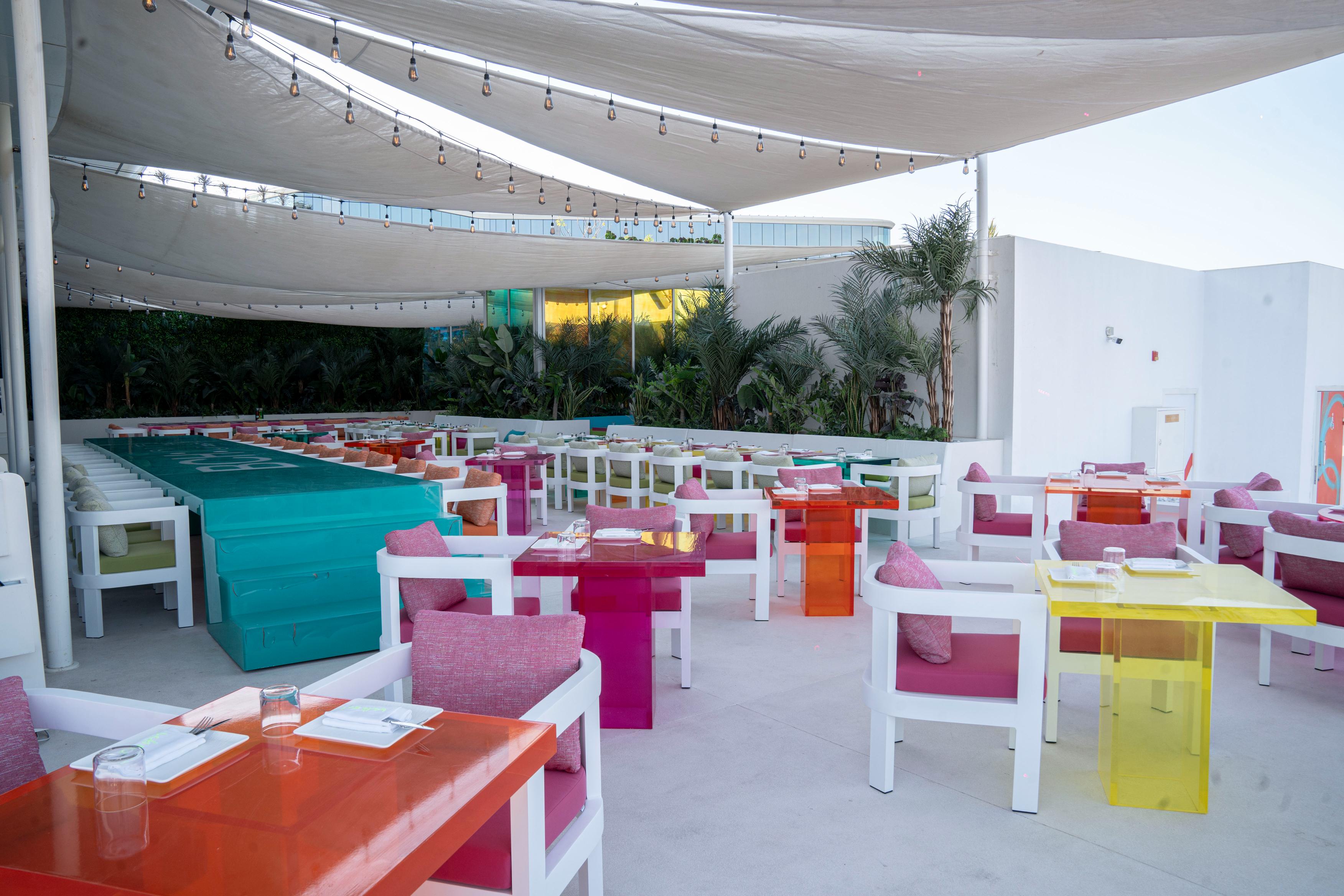 But Pelá is more than just exceptional food; it’s a celebration of the coastal lifestyle. The restaurant’s design is a vibrant homage to Mediterranean culture, featuring hues of Park Green, Fuchsia Pink, Tabriz Blue, and Mandarin Orange. From sleek whitewashed walls to lively acrylic accents, the decor creates a sophisticated yet energetic atmosphere that resonates with the rhythms of the sea.