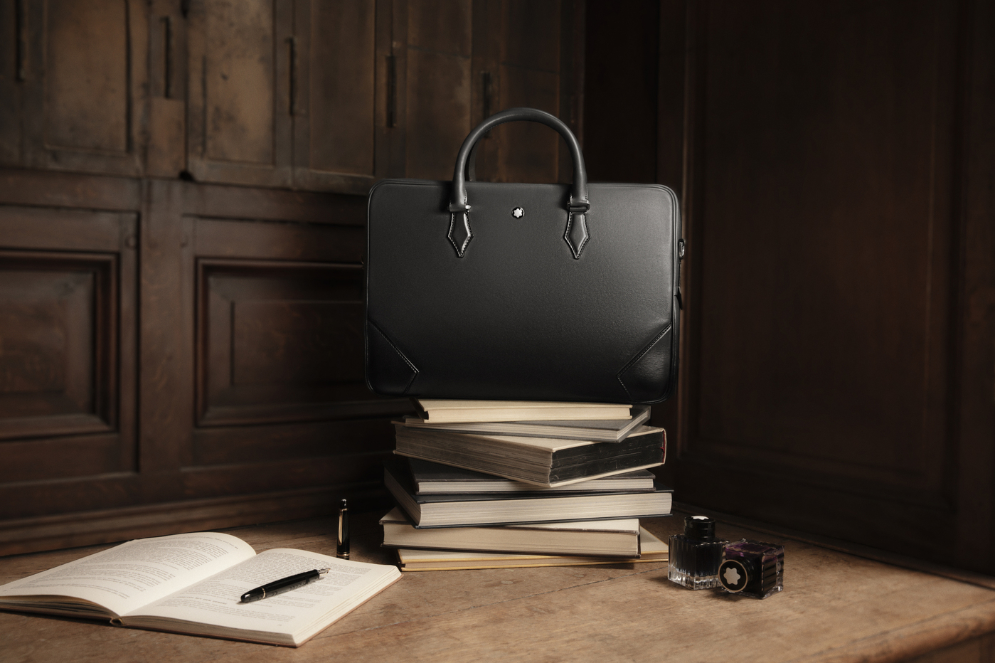 In the same spirit, it was also an ink-stained heritage glass bottle found in the Montblanc archives that inspired Artistic Director Marco Tomasetta to introduce a captivating sfumato effect to a selection of Meisterstück leather pieces.