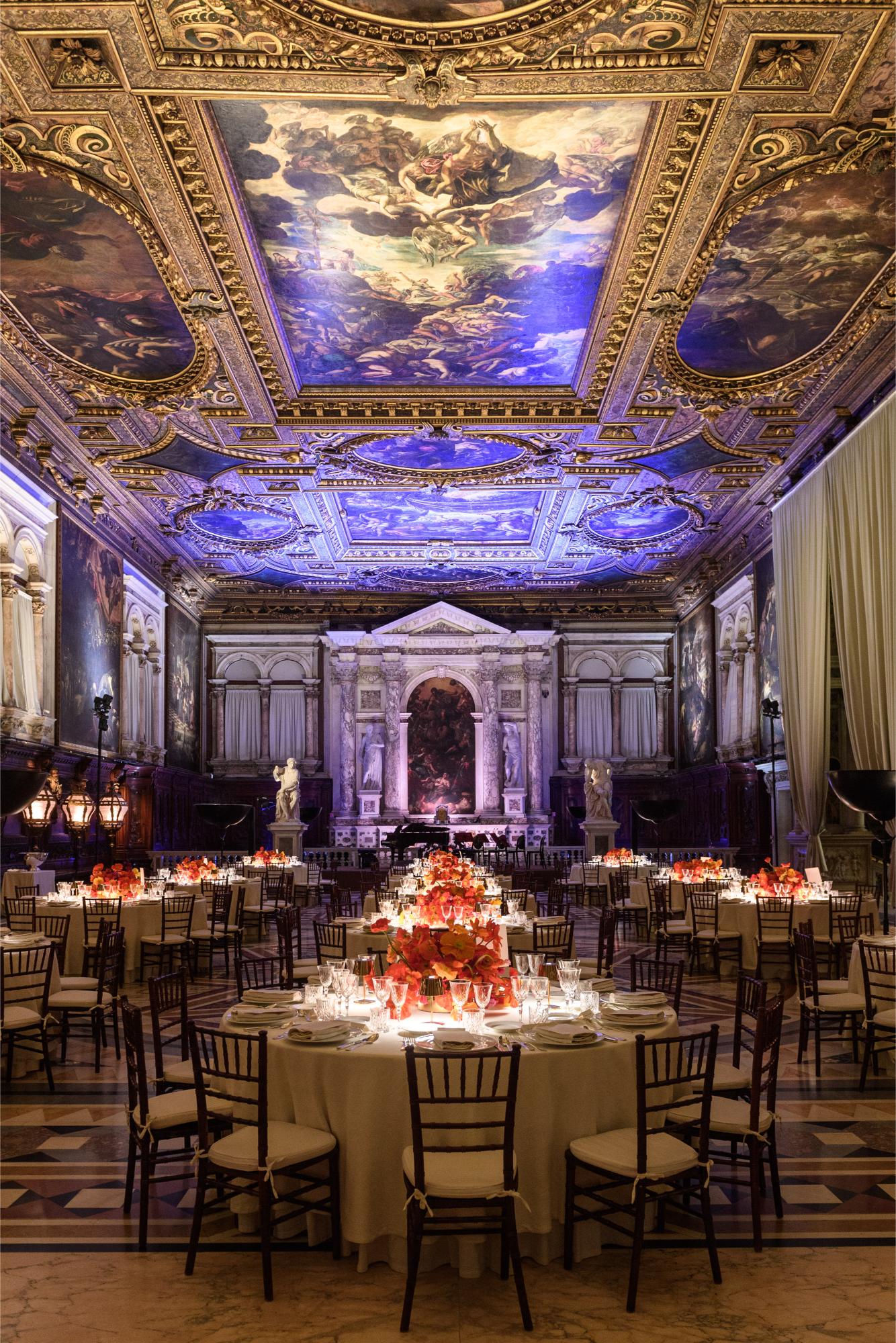 Following a welcome drink in the main hall, guests were then ushered to the Salone Maggiore where they dined under the breathtaking frescos of Tintoretto.