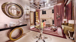 Art and design play a central role throughout the boutique. Vintage furniture sits alongside contemporary pieces, while carefully selected artworks and original sketches reference the maison’s creative heritage. Decorative elements, including sculptural objects and curated displays, create a gallery-like atmosphere, echoing Roger Vivier’s long-standing relationship with art and culture.
