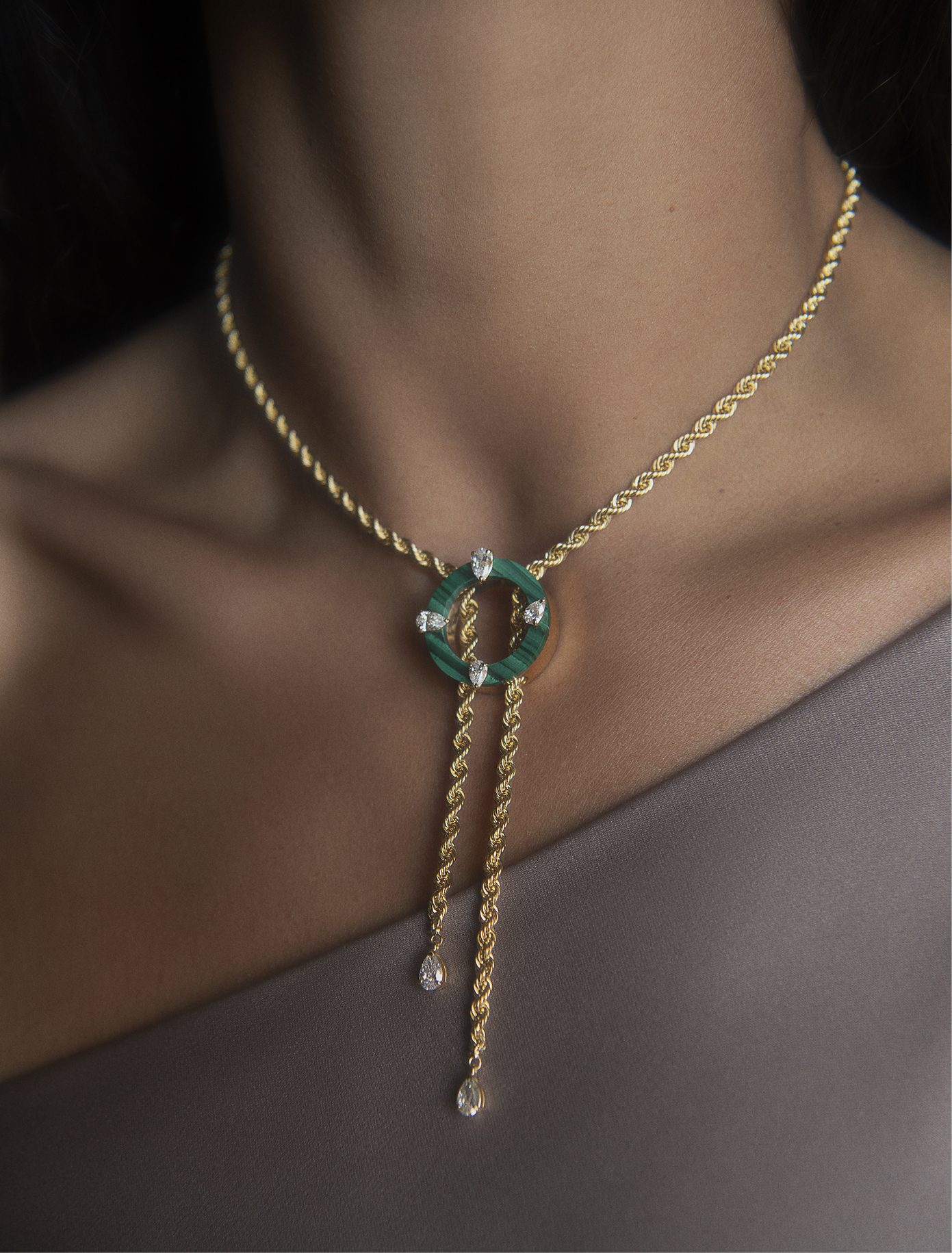 Zainab: We started our brand with two collections: Malachite and the Allah Cube Collection. The Allah collection is a collection of Allah cube pendants, which are more traditional and religious but also timeless. People wear them all the time, and they are often purchased as gifts. They were designed to be simple pieces that can be worn on their own or paired with other jewellery.