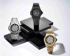 This year the brand is introducing its Big Bang Integral in a 40mm design for the first time. Offered in three new configurations in yellow gold, titanium and “All Black” ceramic, the “Time Only” collection refocuses on the essence of watchmaking: hours, minutes, seconds and the date, without losing any of the power of the watchmaker’s codes. The iconic integrated bracelet offers powerful architecture and a striking finish. A sapphire crystal on the face and back houses the watch’s oscillating weight. The ‘Time Only’ Big Bang Integral in titanium and yellow gold join the main collection. The ‘All Black’ version is limited to 250 pieces.